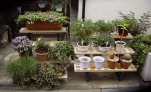誕生日が近いということで、さらに新しい花台(右)を娘に買ってもらって、だいぶ華やかになりました。 |