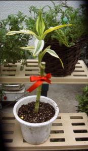 なんちゃらバンブー。竹の一種だそうです。室内で水だけで育てられます。最近、あちこちでよく見かけます。 |