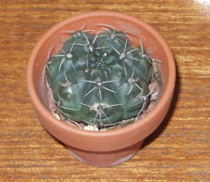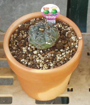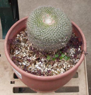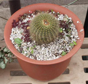移しかえた後のチクリン。鉢を大きいのに移しかえると、サボテンって大きくなるんですよ〜 |