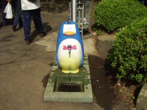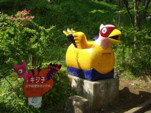 公園内にあったゴミ箱。なんだかかわいい。これはキジ子だが、キジ男もいたぞ。 |
