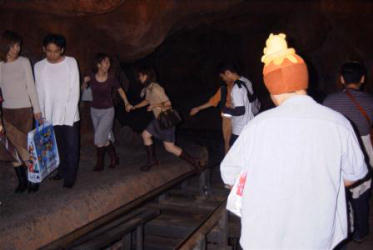↑の通路を通って、無事に(?)出口から出てきたところ。人が続々と出てくる。 (写真が悪いな‥‥) |