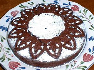 ※ ホイップクリームを添えて食べるとおいしい。 写真はレースペーパーを上にのせて粉砂糖をふりかけ模様をつけました。