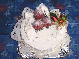 ふわふわのスポンジケーキに 白いクリームとまっ赤ないちご。